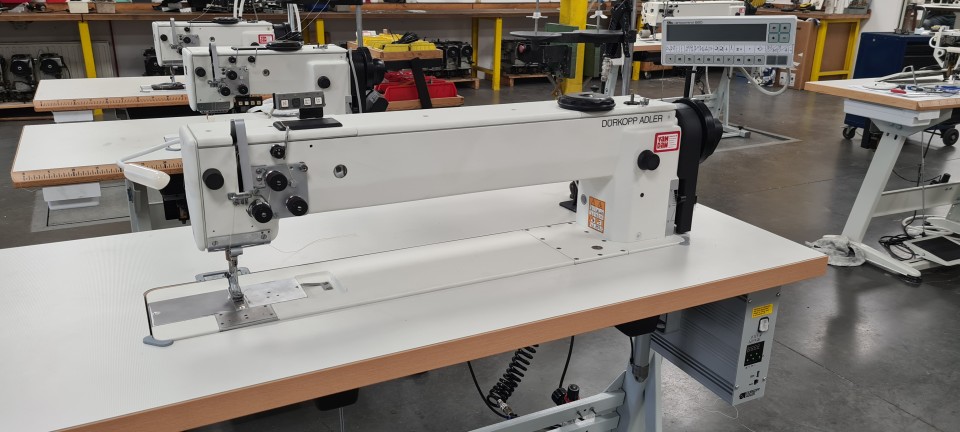 Dürkopp Adler 767-65 FA 373Dürkopp-Adler 767-65FA273 FLP RAP HP Langarm Industrie Nähmaschine, wieder neu aufgebaut. Doppelsteppstichmaschine mit Unter,- Nadel,- und alternierendem Fuß-Obertransport, Dreifachtransport Durchgangsraum 650mm Elektromagnetischem Fadenabschneider, Elektropneumatischer Nahtverrieglung Elektropneumatischer Nähfußlüftung Elektropneumatischer Hubschnellverstellung (besonders effizient für (dicke) mehrschichtige Näharbeiten) Mit großem Vertikalgreifer, Sicherheitskupplung, einstellbarer Nähfußhubhöhe Automatischer Nadelstoppposition, Geschwindigkeitsanpassung, Tastenkombination für Zwischenriegel, Nadelhochstellung hoch/tief, Riegelunterdrückung und Schnell-Hubverstellung Voll-Automatischer Ölschmierung Leise energieeffiziente Efka DC Servo Motor 230V mit Bedienfeld Komplett montiert mit Gestellsatz, Tischplatte Prijs: € 0.00 |